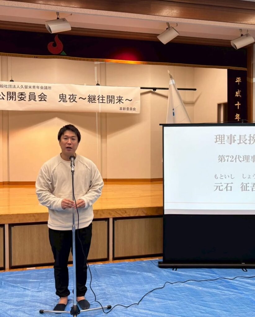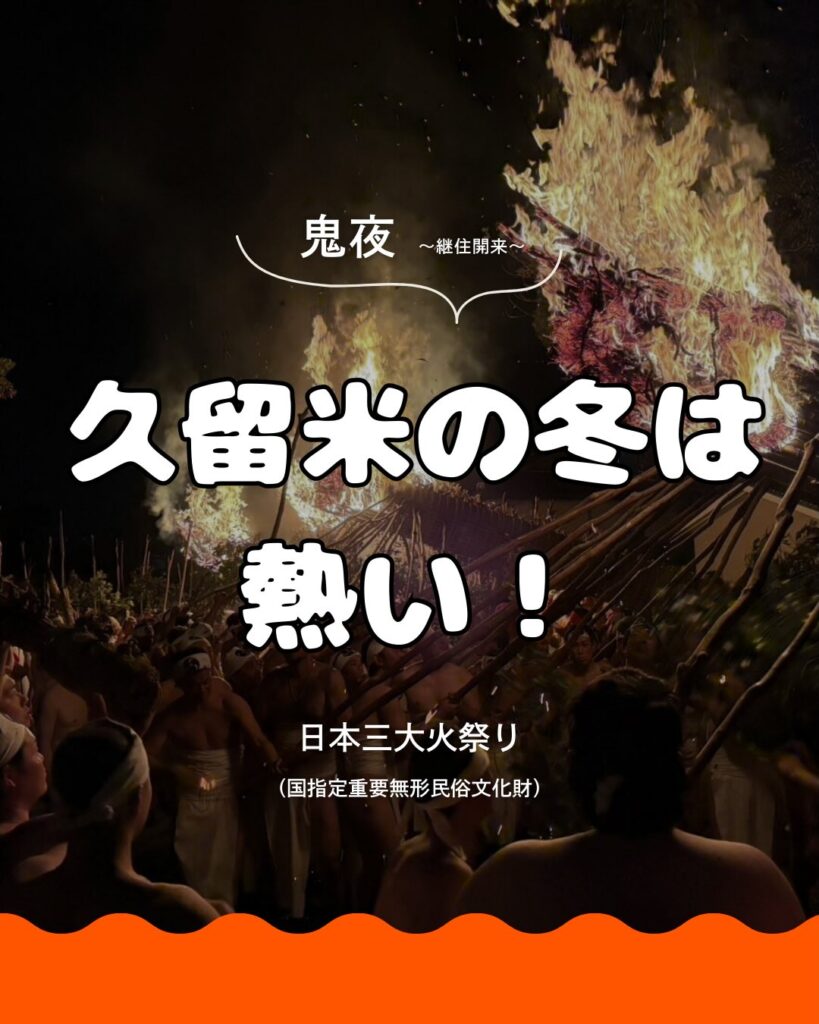 日本三大火祭りのひとつであり、大善寺玉垂宮で1,600年続く「鬼夜」。当青年会議所は毎年参画させていただいており、今年も大松明の迫力や、長年この祭りを守り継いでこられた地元の皆様の熱意、そして見学・参加された多くの方々から大きな力をいただき、2026年の良いスタートを切ることができました。